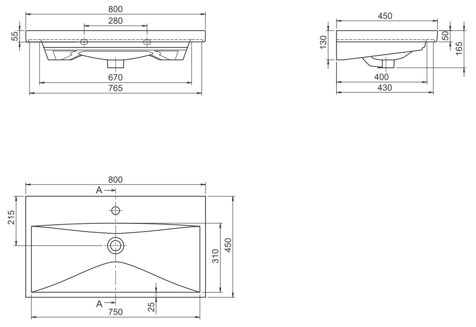 Мебельный умывальник с отверстием для смесителя и переливом.