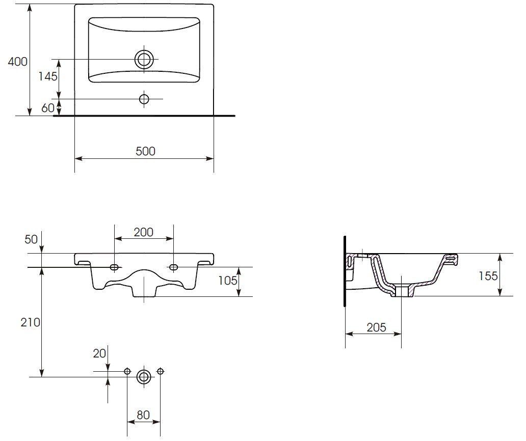 Мебельная фарфоровая раковина с отверстием под смеситель и переливом.