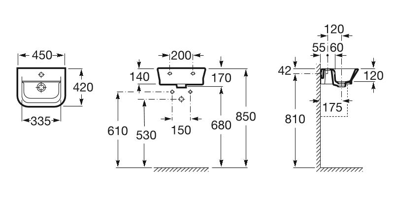 - Roca The Gap 65x47 A327473000 - только подвесной монтаж, совместим с пьедесталом A337470000 и полупьедесталом A337471000