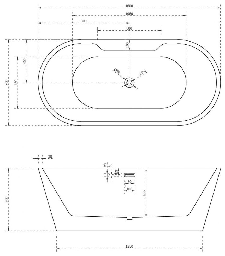 Акриловая отдельностоящая ванна в трех размерах. Слив-перелив, стальной каркас, белая крышка слива.