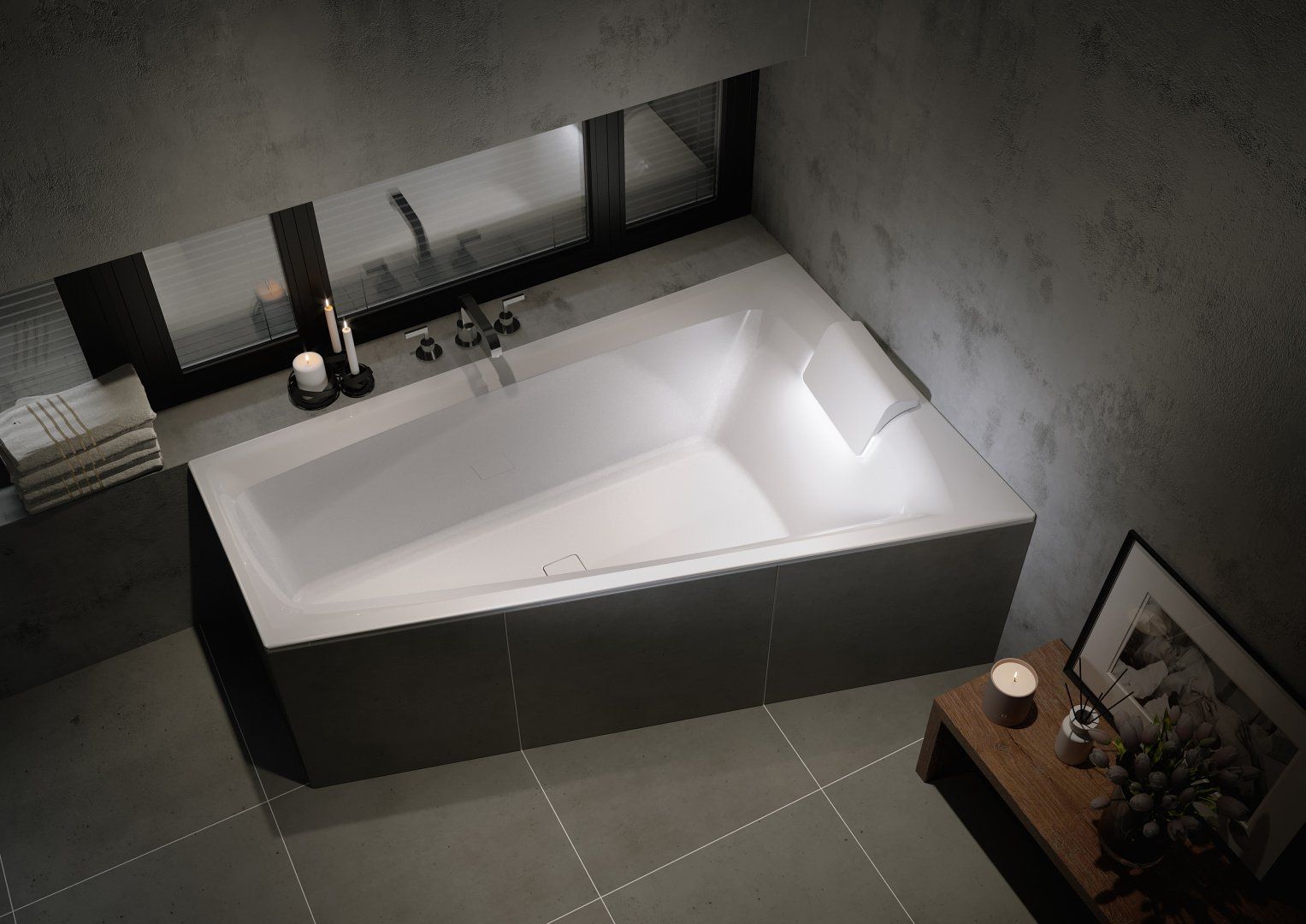 Это новое слово в дизайне производства ванн от RIHO. Отличительной чертой данных ванн является квадратная крышка сифона, выполненная в цвете самой ванны, открывание которой происходит простым нажатием. Данные ванны имеет узкий бортик, что делает ее идеальной для установки в подиум или облицовки плиткой. Также стоит обратить внимание на интегрированный в ванну перелив, который выполнен в виде узкой щели и имеет большую пропускную способность и прекрасные тонкие линии дизайна сочетающиеся в целом с ванной. Также данные ванны предлагаются производителем с интегрированной в подголовник подсветкой. Размеры - 170х110 см. Глубина - 47 см. Объем - 320 литров. Сифон входит в комплектацию ванны.